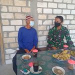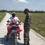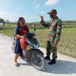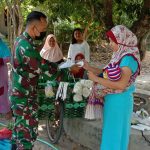 Pati – Anggota Koramil 16-0178/Pati sedang melakukan kegiatan bagi masker gratis dan edukasi warga Desa Tamansari yang selesai dilaksanakan program TNI Manunggal