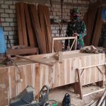 Pati – Hari pertama pelaksanaan kegiatan TMMD, TNI dan warga terus persiapkan perlengkapan dan sarana prasarana yang akan digunakan untuk mendukung pengecoran