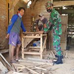 P Pati -Anggota Satgas TMMD ditengah kesibukannya melaksanakan rehap rumah mereka juga melakukan interaksi bersama masyarakat desa Tamansari. Dengan ramah tamah