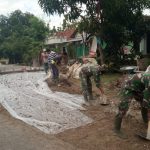 Pati – Sasaran fisik berupa pengecoran jalan pada program Tentara Manunggal Membangun Desa (TMMD) Reguler Ke-1111 yang dilaksanakan di Desa Tamansari, Kecamatan