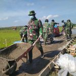 Pati – Kebersamaan dan kekompakan anggota Satgas TNI Manunggal Membangun Desa (TMMD) Reguler Ke-111 Kodim 0718/ Pati dengan masyarakat Desa Tamansari,Kecamatan Jaken,