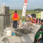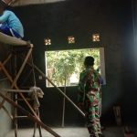 Pati – Anggota Satuan Tugas (Satgas) TNI Manunggal Membangun Desa (TMMD) Reguler Ke-111 Kodim 0718/Pati, dengan cekatan mengerjakan pengacian dinding bagian