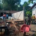 Pati-Sertu Sutadi tim satgas TMMD melakukan pembongkaran puing pondasi lama yang sudah rusak di rumah Syukur wrga desa Tamansari yang mendapatkan bantuan