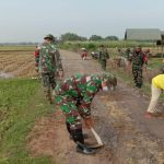 Pati – Kebersamaan dan kekompakan anggota Satgas TMMD Reguler Ke-111 Kodim 0718/Pati dengan warga masyarakat Desa Tamansari, Kecamatan Jaken, Kabupaten Pati, Jawa