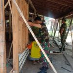 Pati-Hingga siang menjelang, tidak hentinya anggota satgas TMMD reguler 111 Kodim Pati bersama masyarakat terus bekerja. Salah satu rehab rumah di program