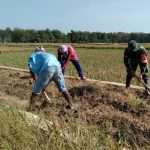 Pati- Di jalan penghubung antar desa ditengah persawahan, dikanan dan kiri terlihat pepadian menguning yang siap untuk dipanen, anggota satgas pra TMMD