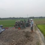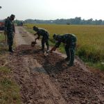 Pati – Danramil 16/Jaken Kapten Kav Budi Karyadi, SE memimpin kegiatan pengerjaan pengecoran jalan sepanjang kurang lebih 1450 meter bersama anggota Satgas