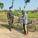 Pati – Ditengah kesibukannya anggota Satgas Pra TMMD Kodim 0718/ Pati di Desa Tamansari, Kecamatan Jaken, Kabupaten Pati sosialisasikan protokol kesehatan (Prokes).