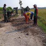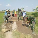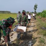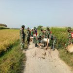 Pati – Di tengah area persawahan ditambah teriknya matahari tidak menjadi penghalang bagi Prajurit yang tergabung dalam Satgas TMMD Reguler Ke-111 Tahun