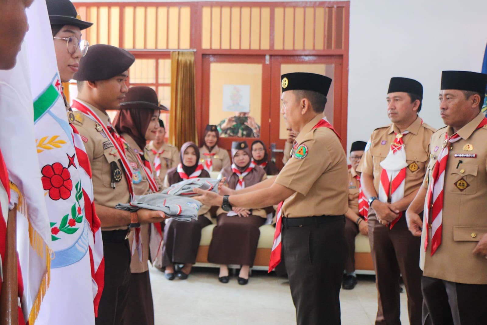 Berandang – Sekretaris Daerah (Sekda) Provinsi Bengkulu Hamka Sabri melepas kontingen Kwarda Bengkulu yang akan mengikuti Perkemahan Antar Satuan Karya (Peran Saka) Tingkat Nasional 2022 di Bangka Belitung, bertempat di Sekretariat Kwartir Daerah Gerakan Pramuka Bengkulu, Jumat (30/9/2022).