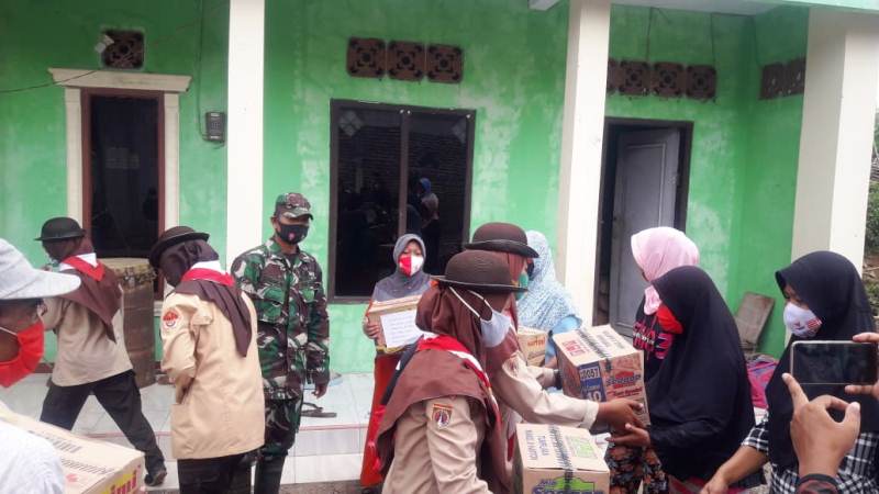 Brebes – Selain di Dusun Kedung Kandri RT/RW. 01, Desa Kalinusu, Kecamatan Bumiayu, Kabupaten Brebes, Jawa Tengah, Pramuka Saka Wira Kartika (SWK) binaan Koramil 11 Paguyangan Kodim 0713 Brebes, juga memberikan bantuan sosial berupa 8 dus mie instan di Dusun Karanganyar RT. 02 RW. 01, Kalinusu. Minggu (18/10/2020).