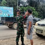 Badau – Anggota koramil 1206 – 04/Badau Serma Aspan bersama Anggota Polsek Badau melaksanakan kegiatan Penegakan disiplin protokol kesehatan guna untuk