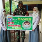 Pengkadan – Babinsa1206-09/Jongkong Mengajak Muda Mudi Pelajar SMAN 1 Wajib mengunakan Masker dalam menghadapi pandemi COVID-19 di SMAN 1 Pengkadan Desa Riam