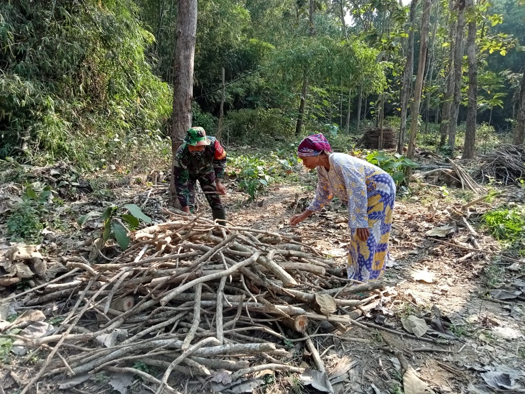 Seperti yang dilakukan oleh Serda Hermanto, personel Satgas TMMD 111 Kodim 0718/Pati yang sedang membantu Yatini (58) warga Dusun Kalimati, Desa Tamansari, mengumpulkan kayu yang akan digunakan sebagai bahan utama dalam memasak sehari-hari.