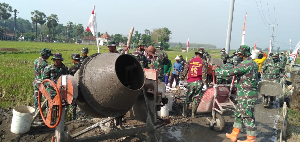 Anggota Satgas TMMD Kodim 0718/Pati Gerebek Rame-Rame Tuntaskan Pekerjaan