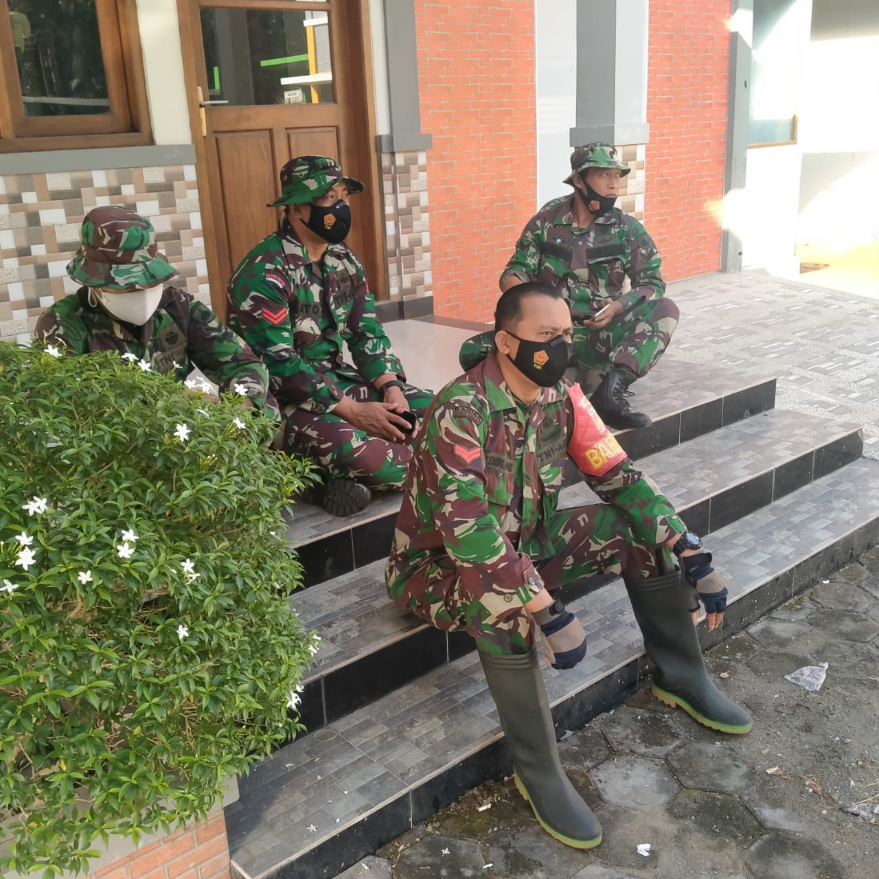 Pati- Setelah berkegiatan dari pagi sampai siang hari, beberapa anggota TNI tampak sedang beristirahat dirumah salah satu warga, mereka berkumpul dan bercengkrama, sambil menunggu makan siang tiba.Kamis,(17/06/2021).