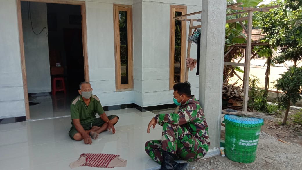 Pati- Terlihat Babinsa Desa Tamansari, Sertu Jumroni sedang berada dirumah salah satu warga, dia terlihat sedang asik mengobrol dengan pemilik rumah. Minggu,(18/07/2021).
