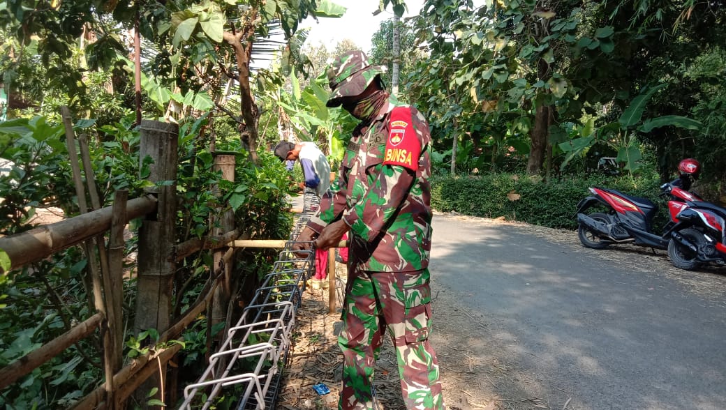 Sambil belajar Sertu Budi Waluyo membantu Ngadiman (52) tukang batu dari desa setempat mengikat rangka dengan kawat. Walaupun baru belajar namun Sertu Budi Waluyo cepat bisa menyesuaikan dapat mengerjakan, sehingga pekerjaan cepat selesai.
