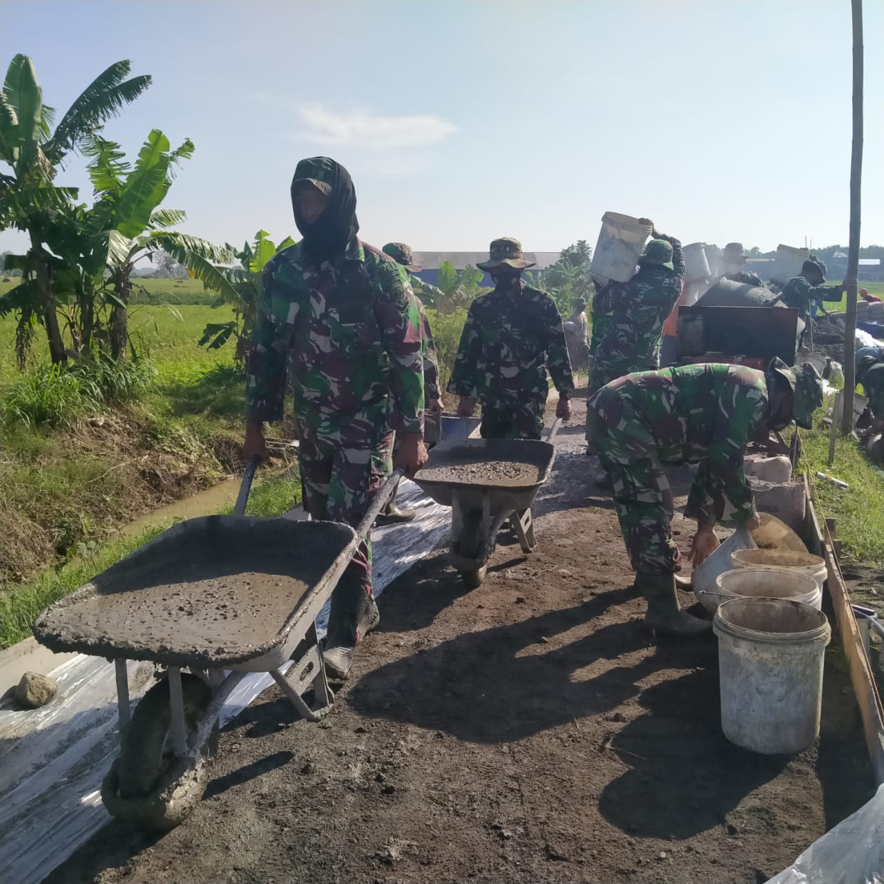 Sejumlah anggota Satgas TMMD bersama masyarakat melakukan pembangunan pengecoran jalan rabat beton, walaupun kondisi alam yang berubah-ubah. Terkadang cuaca tak bersahabat, kadang hujan dan kadang panas. Akan tetapi tidak menyulutkan semangat prajurit dan masyarakat untuk bekerja.