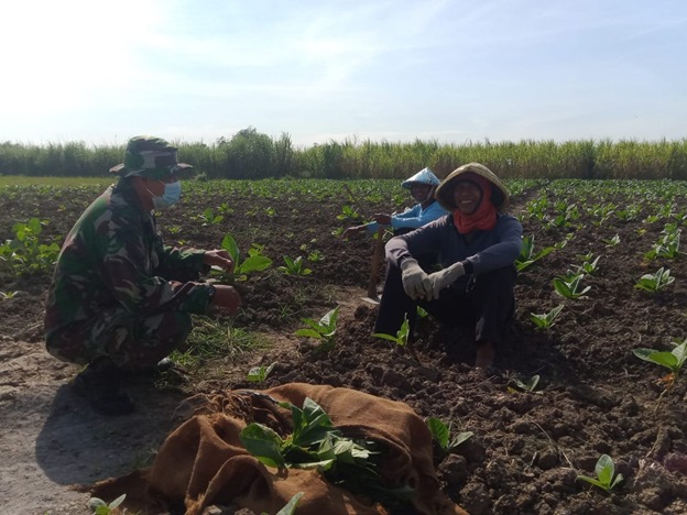 Seperti dilakukan Serda Ahmad Solikin, usai melaksanakan kegiatan pengerjaan Rehab RTLH ia berinisiatif membantu petani Sawi Bapak Parji (40) di Desa Tamansari Kecamatan Jaken, Kabupaten Pati.