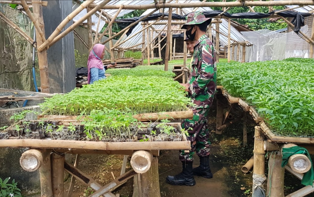 Pati – Disela-sela kesibukannya sebagai anggota Satgas TMMD Reguler ke-111 Kodim 0718/Pati, Serda Sukarji berkunjung ke tempat pembibitan tanaman cabai milik Ibu Titik (39) warga Dukuh Kemiri, Desa Tamansari, Kecamatan Jaken, Kabupaten Pati, Selasa (22/6/2021)