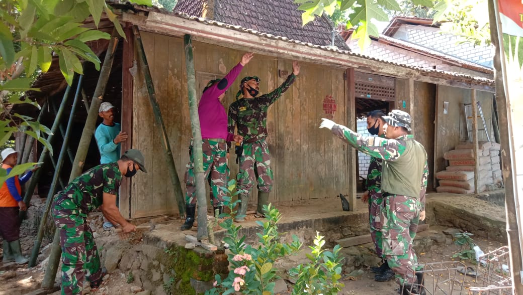 Pati – Program bedah rumah warga yang tergolong tidak layak huni dilakukan Kodim 0718/Pati melalui Satgas TNI Manunggal Membangun Desa (TMMD) Reguler ke – 111 di Desa Tamansari, Kecamatan Jaken, Kabupaten Pati.