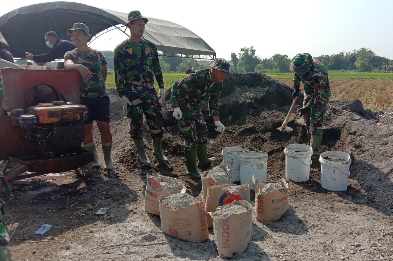 Pati – Pelaksanaan kegiatan TMMD Reguler 111 di Desa Tamansari yang mengerjakan infrastruktur berupa sasaran fisik berupa pembangunan pada pengecoran jalan akan tetap lancar asalkan tidak terkendala dengan cuaca hujan, Rabu (23/6/2021).