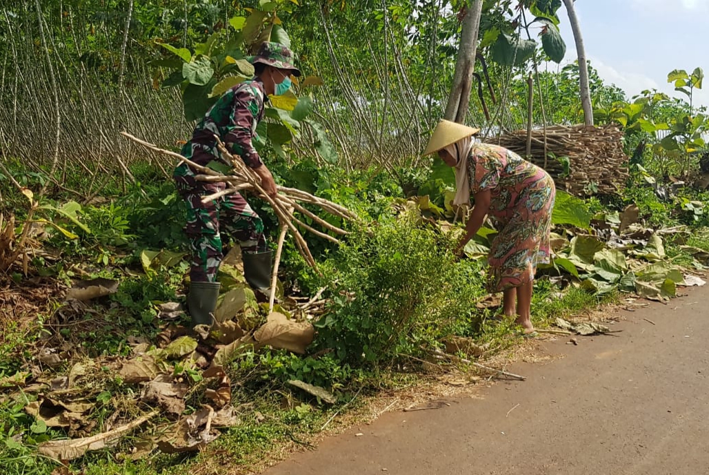Salah satunya adalah seperti yang dilakukan Serda Sukarji, dirinya terlihat sedang membantu ibu Darmini (52) warga Dukuh Pandahan RT.04/02, Desa Tamansari, Kecamatan Jaken, Kabupaten Pati, yang sedang mencari kayu bakar untuk kebutuhan memasak sehari-hari, Rabu (14/7/2021).