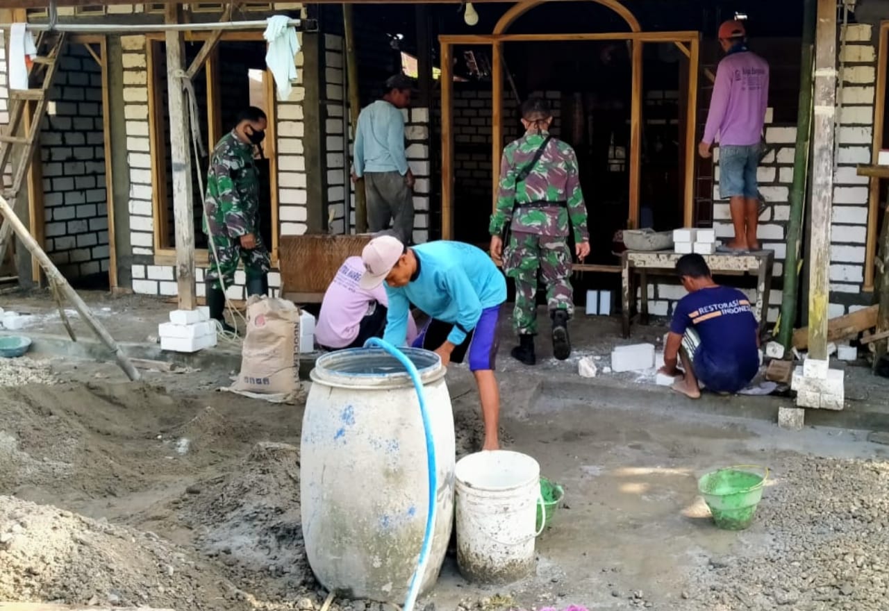 Tidak ada ampun dan alasan, gas polo rang bilang, terlihat anggota satgas yang cukup banyak membantu pembangunan rumah yang hingga hari ini pada tahap pembangunan tembok sisi kanan, kiri dan depan rumah. Bahkan pemasangan kusen pintu serta jendela juga sudah terpasang. Minggu,(13/06/2021).