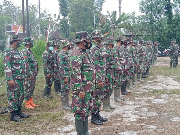 Pati – Sudah lazimnya diinstansi pemerintah manapun, terlebih di instansi militer, apel pagi wajib dilakukan setiap hari kerja ataupun pada setiap event kegiatan. Seperti halnya Satuan Tugas TNI Manunggal Membangun Desa (TMMD) Reg ke-111 TA. 2021 Kodim 0718/Pati yang bertugas di Ds Tamansari Kecamatan Jaken Kabupaten Pati.