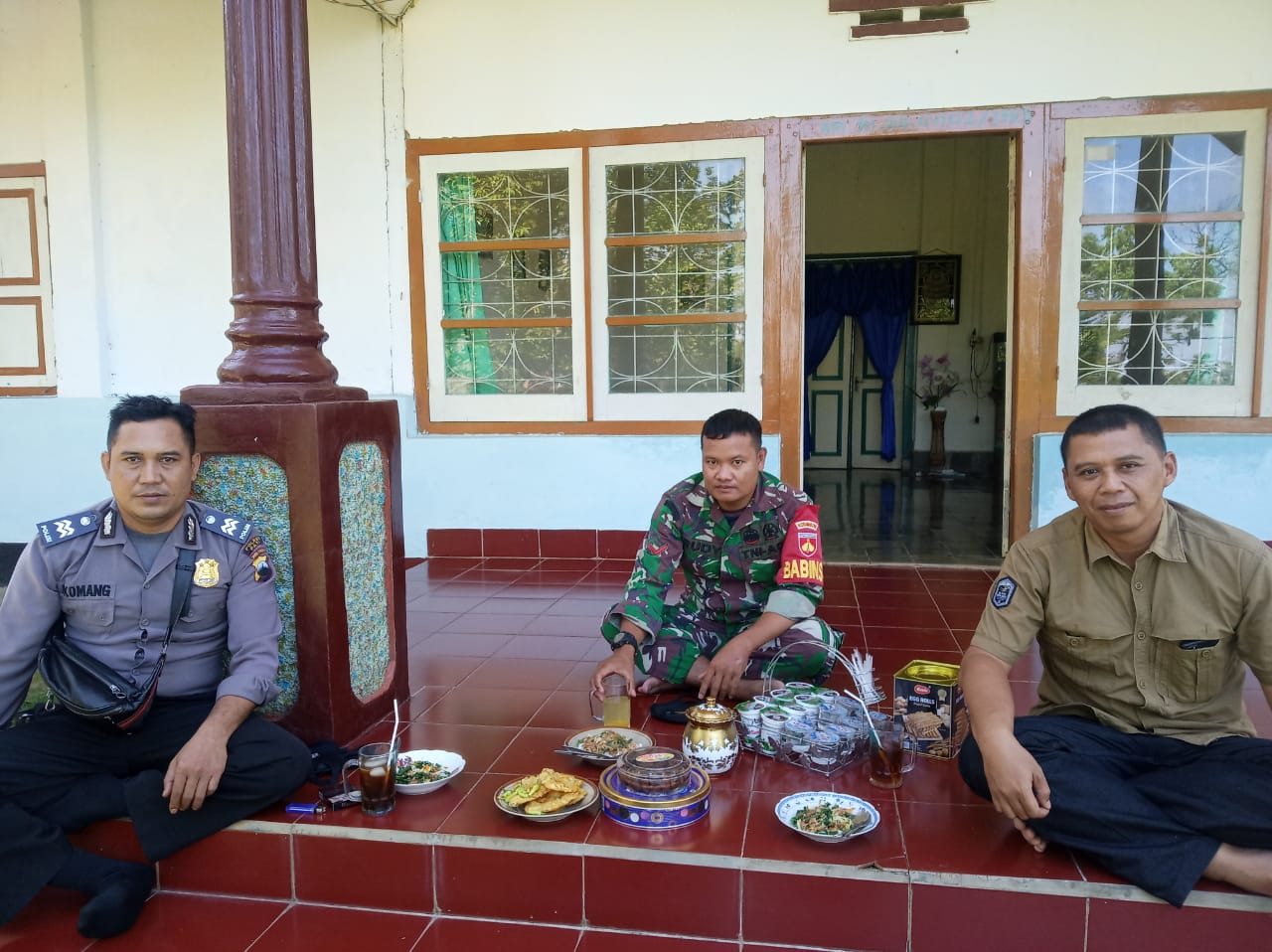 Seperti terlihat kali ini, dirinya bersama Bhabinkamtibmas dan warga setempat saat sedang melaksanakan istirahat siang di teras rumah warga. Dengan suguhan seadanya mereka duduk bersama dalam jarak aman sesuai dengan protokol kesehatan Covid-19,