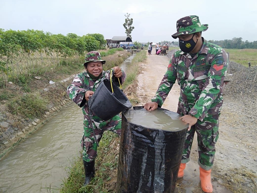 “Mungkin terlalu panas karena dipakai seharian ini mesin Robin kami tak berfungsi. Hal itu kami tanggulangi dengan mengangkut air dengan menggunakan ember dan di tampung di Drum, dan diangkut secara beranting ke tempat pengadukan semen,” kata Sersan Aris salah satu personel TMMD di Tamansari, Kamis.