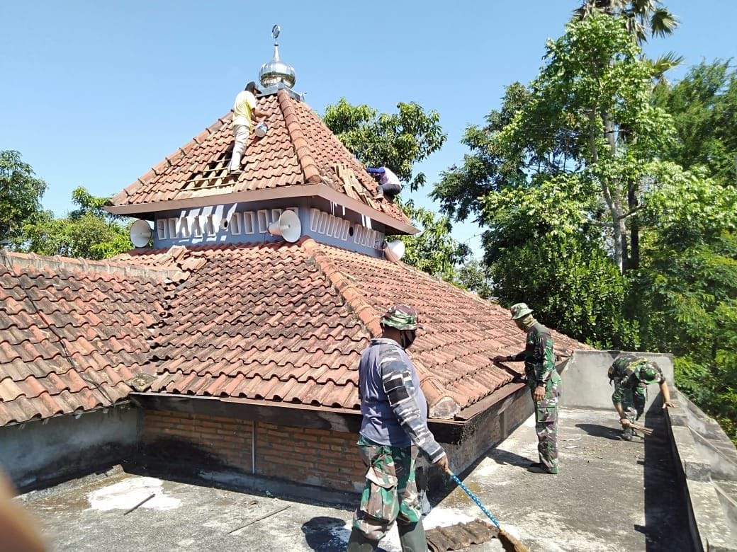 Pati – Terus berupaya semaksimal mungkin, Satuan Tugas (Satgas) TMMD ke 111 Kodim 0718/Pati, bersama warga Desa Tamansari kecamatan Jaken kabupaten Pati, berusaha mengejar target yang diberikan dengan terus bekerjasama, terlihat mereka sedang melaksanakan Pengecetan Genteng Masjid Baitul Muttaqin, Jum’at (09/07/2021).