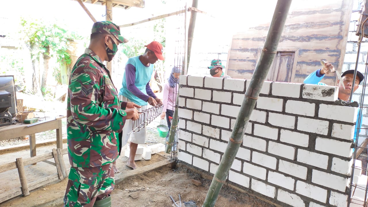 “Dengan gotong royong tidak terasa akan cepat selesai pak, apalagi dibantu oleh bapak-bapak TNI,”ujar Santoso pemilik rumah.