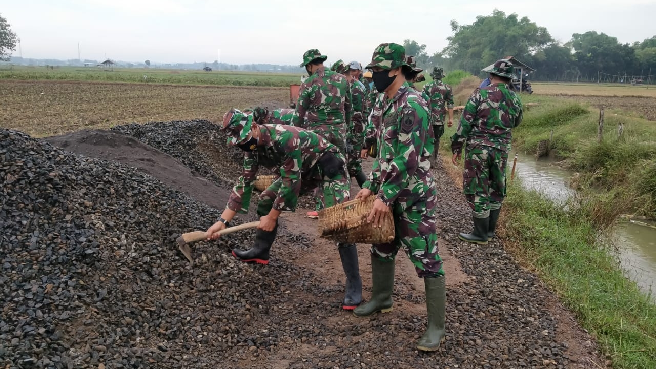 Pati – Tampak suasana ramai di sepanjang jalan di Desa Tamansari,Kecamatan Jaken, Kabupaten Pati. TNI dan Masyarakat sungguh sangat terlihat kompak bekerja sama saat pengecoran jalan yang merupakan salah satu sasaran fisik pada program TMMD ke-111 di Kodim 111/Pati. Jum,at (18/06/2021)