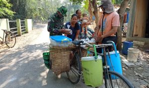 Pati – Suparno (40), penjual ikan segar keliling asal Juwana Pati, akhir-akhir ini ramai diserbu pembeli terutama ibu-ibu manakala berjualan dilokasi TMMD Reguler ke-111 Kodim Pati di Desa Tamansari, Kecamatan, Jaken, Kabupaten Pati. Ia terlihat gembira, pasalnya jalan yang menghubungkan Desa Tamansari menuju Desa Sumberarum Kecamatan Jaken akan segera di betonisasi, Senin (07/6/2021).