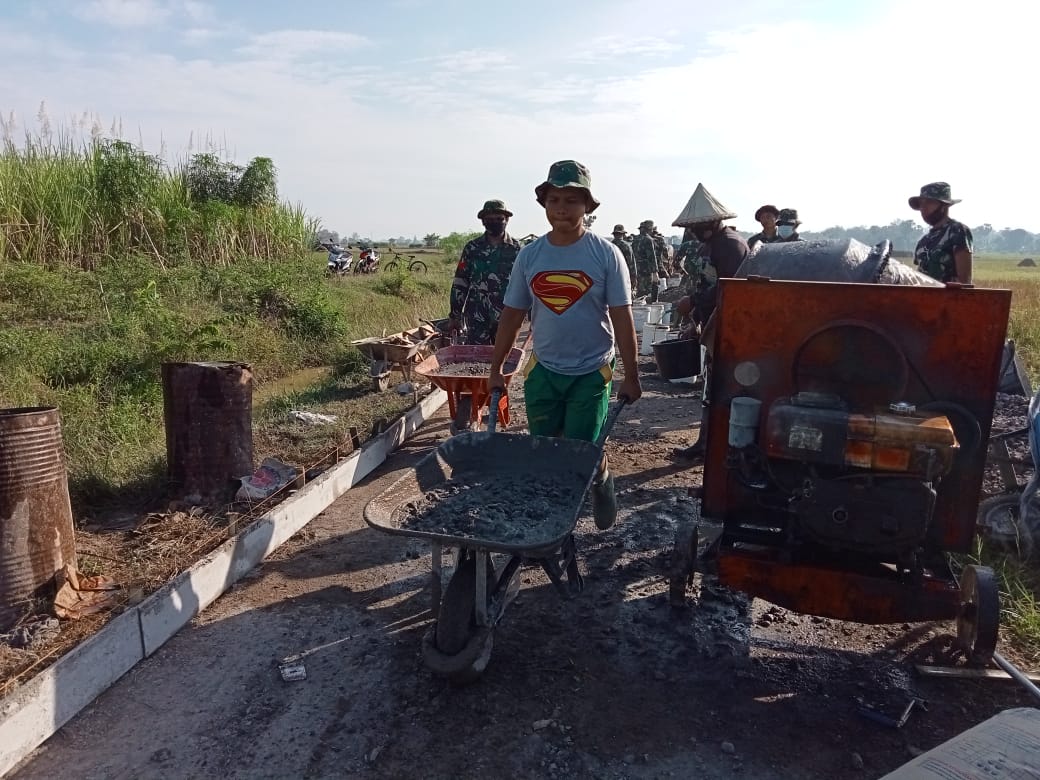 Pekerjaan fisik yang dilakukan TNI bersama warga adalah semenisasi jalan sepanjang 1.450 meter dengan lebar 2,6 meter, rehab RTLH, dan renovasi masjid serta mushola secara umum sudah mencapai 35%.