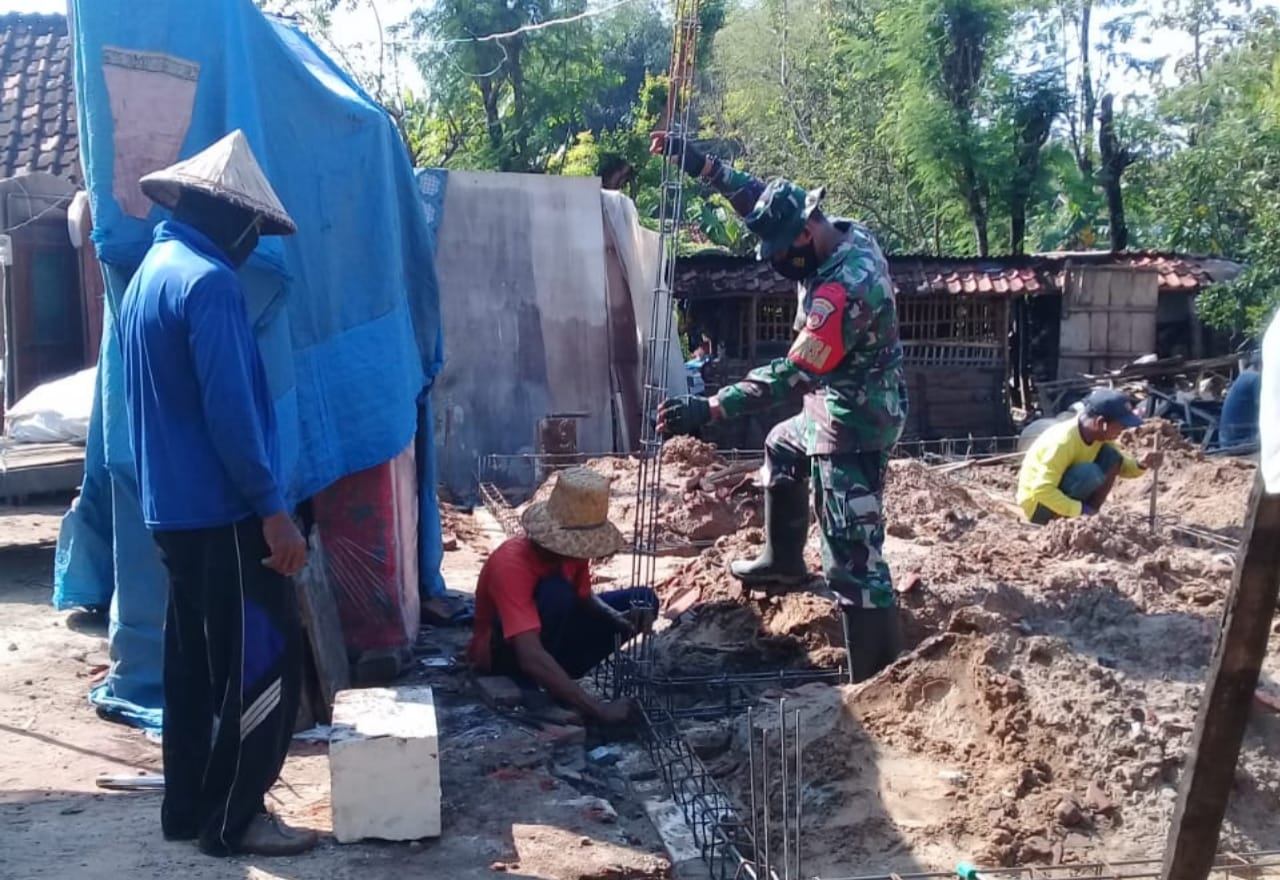 Tentara Manunggal Membangun Desa (TMMD) ke-111 Kodim 0718/Pati bersama Warga merangkai besi untuk cor pada rehab Rumah Tidak Layak Huni (RTLH) yang berada di Desa Tamansari, Kecamatan Jaken, Kabupaten Pati.