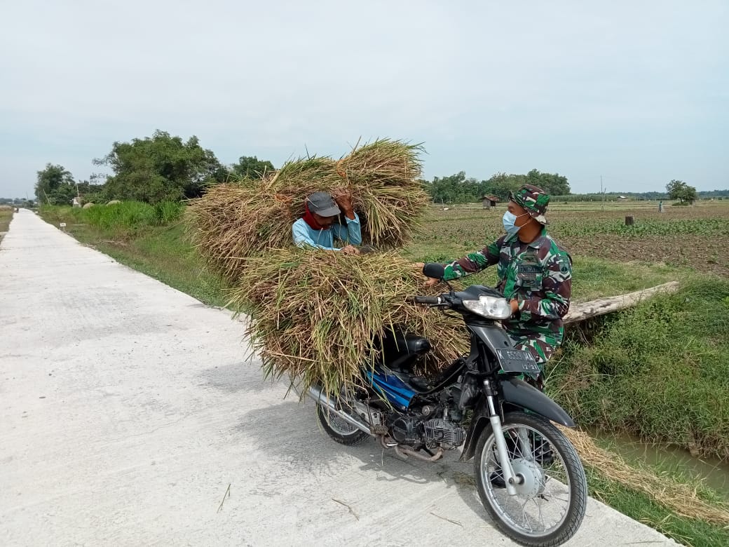 Sambil dibantu Serda Sutrimo merapikan jerami diatas motor untuk pakan ternak miliknya ia mengungkapkan rasa gembiranya.