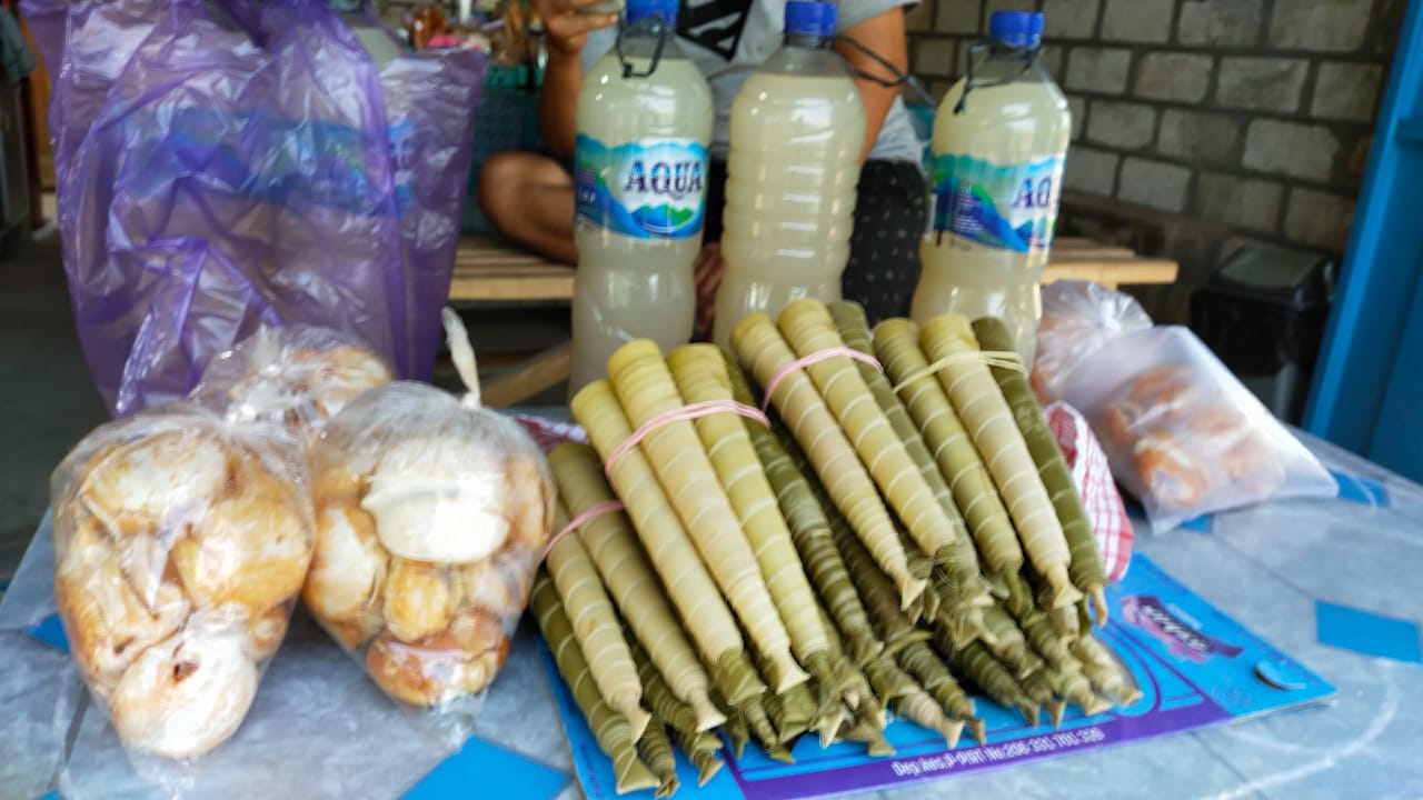“Bukan Cuma siwalan dengan legen saja pak, disini juga banyak yang membuat makanan lain yang dibungkus dengan daun lontar isinya dengan bahan tepung beras dan dikasih pemanis, ini namanya dumbek,”kata Suparmi (45) saat ditemui. Minggu,(06/06/2021).