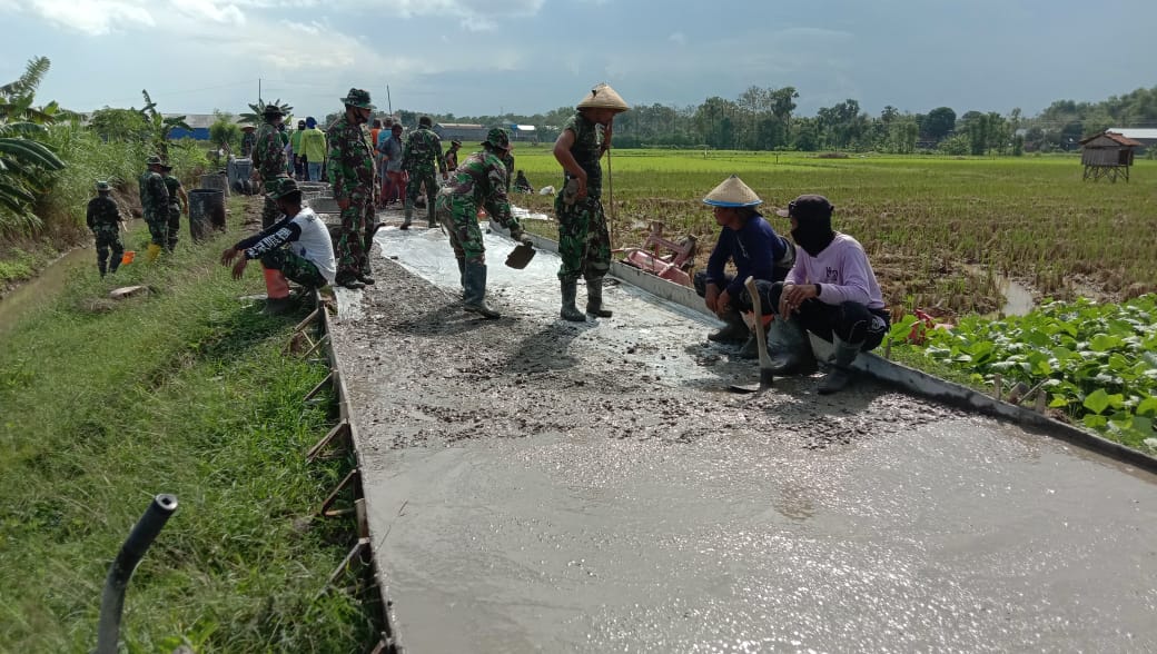 Kapten Czi Sutono mengatakan percepatan proses pengerjaan rabat beton terus dilakukan, selain bentuk Kemanunggalan TNI dengan Rakyat kegiatan gotong royong salah satu upaya guna mencapai target yang sudah ditentukan.