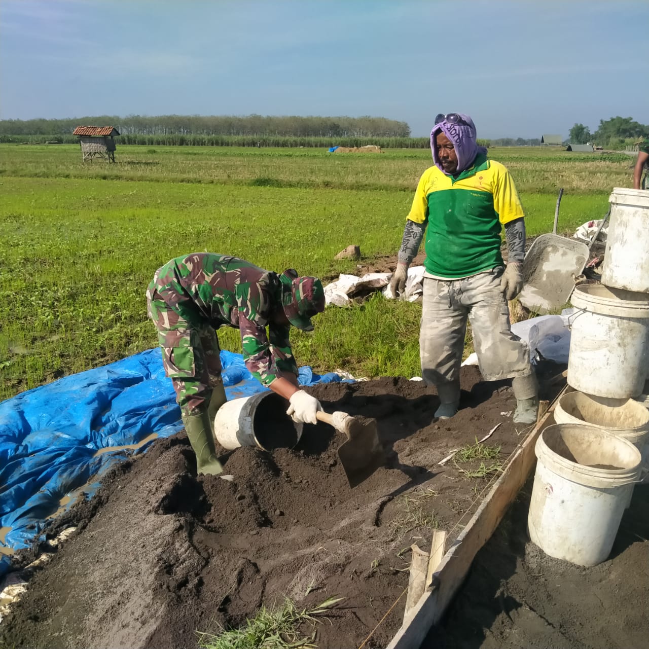 Sersan dua TNI Apriyanto(38), yang saat itu bekerja di bagian penyediaan material adukan, pasir. Mengaku bahwa dengan kondisi yang panas terik seperti ini, sangat penting untuk kebutuhan suplai air minum, agar badan tidak dehidrasi.