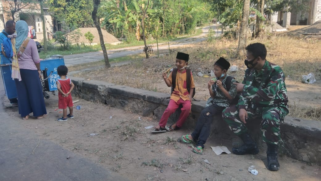 Pati – Keakraban antara peronel TNI dan anak-anak ditunjukan dengan kegiatan belajar maupun bermain di lokasi Pra TMMD Reguler ke 111 Kodim 0718/Pati di Desa Tamansari, Kecamatan Jaken, Kabupaten Pati. Minggu (6/6/2021).