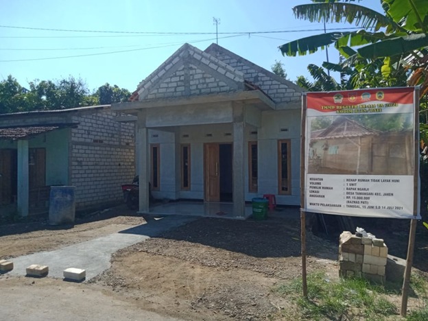 Tampak terlihat rumah milik Bapak Ngarji warga desa Tamansari yang begitu bagus dan kokoh berdiri setelah di rehab oleh anggota Satgas TMMD bersama warga. Semua itu berkat kerja keras pantang menyerah anggota Satgas TMMD bersama warga yang bahu membahu membangun rumah milik Bapak Ngarji.
