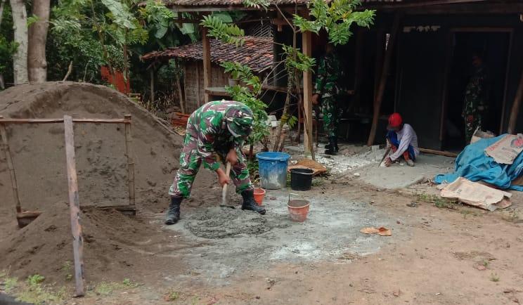 Ketrampilan Prajurit TNI Menggunakan Cangkul di RTLH
