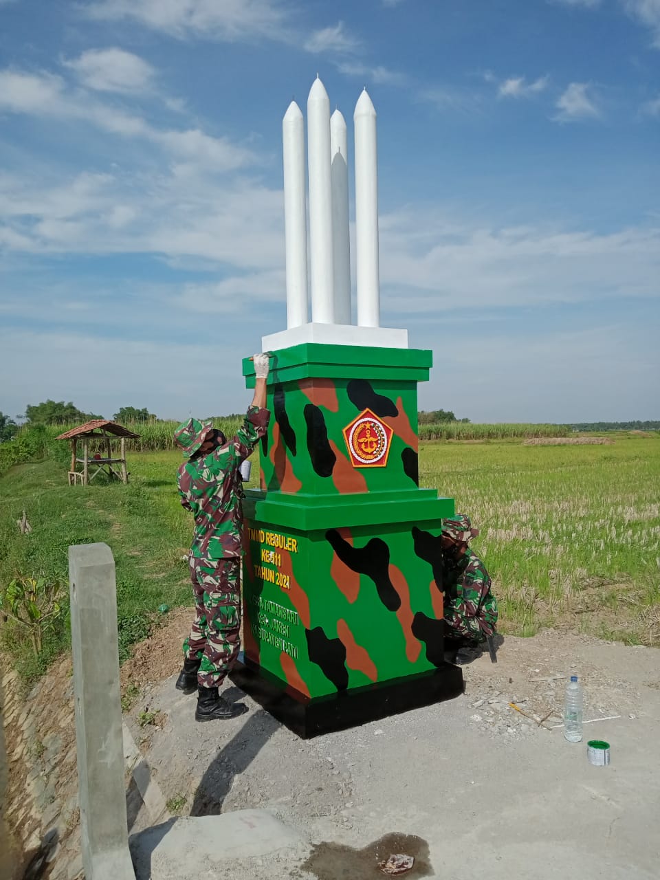 Pembuatan prasasti tersebut merupakan saksi sejarah atas pelaksanaan TMMD Kodim 0718/Pati di Desa Tamansari, Kecamatan Jaken, dimana pagi ini sedang sedikit meneruskan pengecatan.