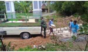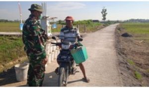 Pati – Dalam kegiatan program TNI Manunggal Membangun Desa (TMMD) Reguler ke-111 Kodim 0718/Pati, Serda Sukarji anggota Satgas terus melakukan komunikasi sosial dengan aparat desa Tamansari, Kecamatan Jaken, Kabupaten Pati, Jawa tengah.