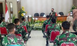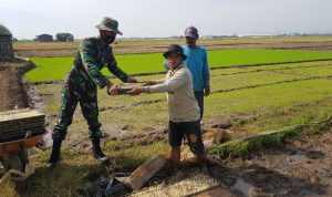 Pati – Dalam kegiatan program TNI Manunggal Membangun Desa (TMMD) Reguler ke-111 Kodim 0718/Pati, Serda Sukarji anggota Satgas terus melakukan komunikasi sosial dengan aparat desa Tamansari, Kecamatan Jaken, Kabupaten Pati, Jawa tengah.