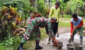 Pati – Dalam kegiatan program TNI Manunggal Membangun Desa (TMMD) Reguler ke-111 Kodim 0718/Pati, Serda Sukarji anggota Satgas terus melakukan komunikasi sosial dengan aparat desa Tamansari, Kecamatan Jaken, Kabupaten Pati, Jawa tengah.