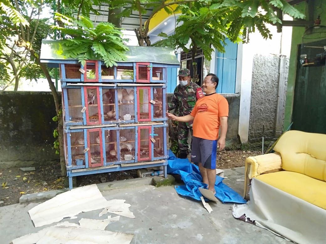 Untuk melakukan komunikasi dengan warga setempat, Serda Muslimin salah satu anggota satgas melakukan komunikasi dengan peternak burung merpati yaitu Utomo ( 65) warga Desa Tamansari Rt.03/Rw.01.
